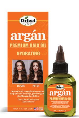 Argan Oil is rich in Oleic Acid and Vitamin E to lubricate the hair shaft so each strand maintains moisture, to prevent dryness and reduce frizz.