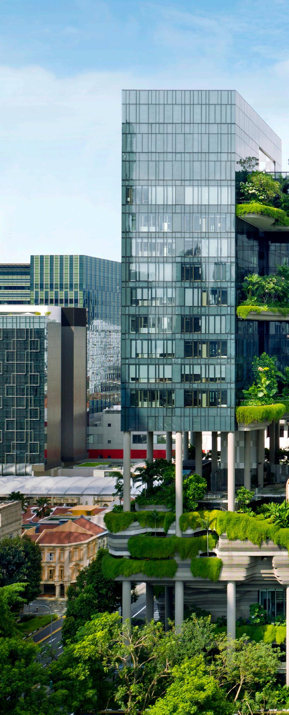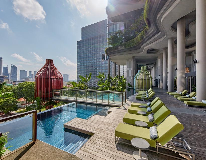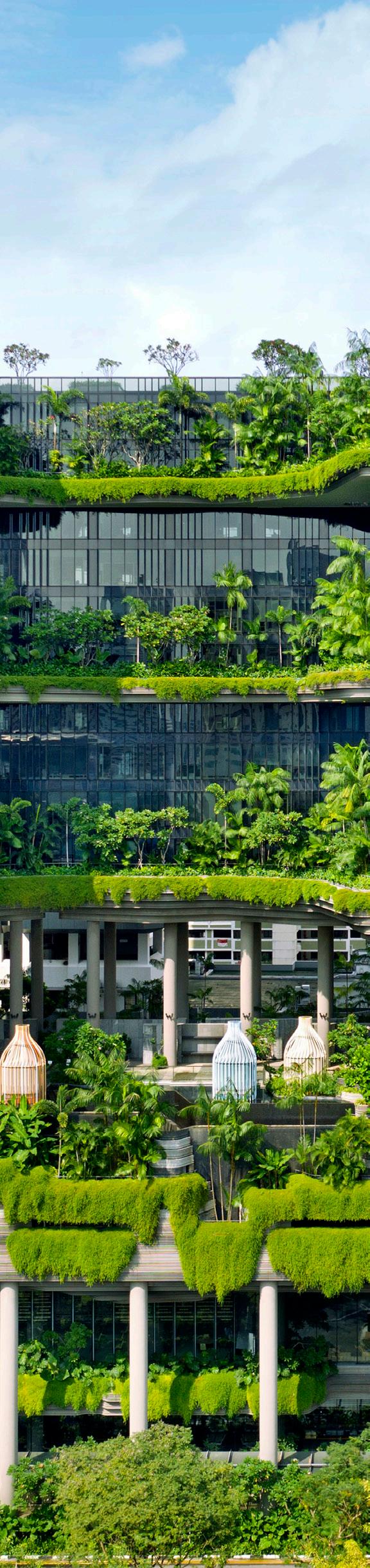 The Singapore-based architecture firm WOHA is responsible for some of the city’s most striking naturecentric structures. Perhaps its best-known to date is the hotel PARKROYAL COLLECTION Pickering. Situated in the heart of the CBD, this futuristic high-rise with cascading terraces of plant life has won numerous awards for design innovation and sustainability, while also becoming one of Singapore’s most popular social media snapshot backdrops.