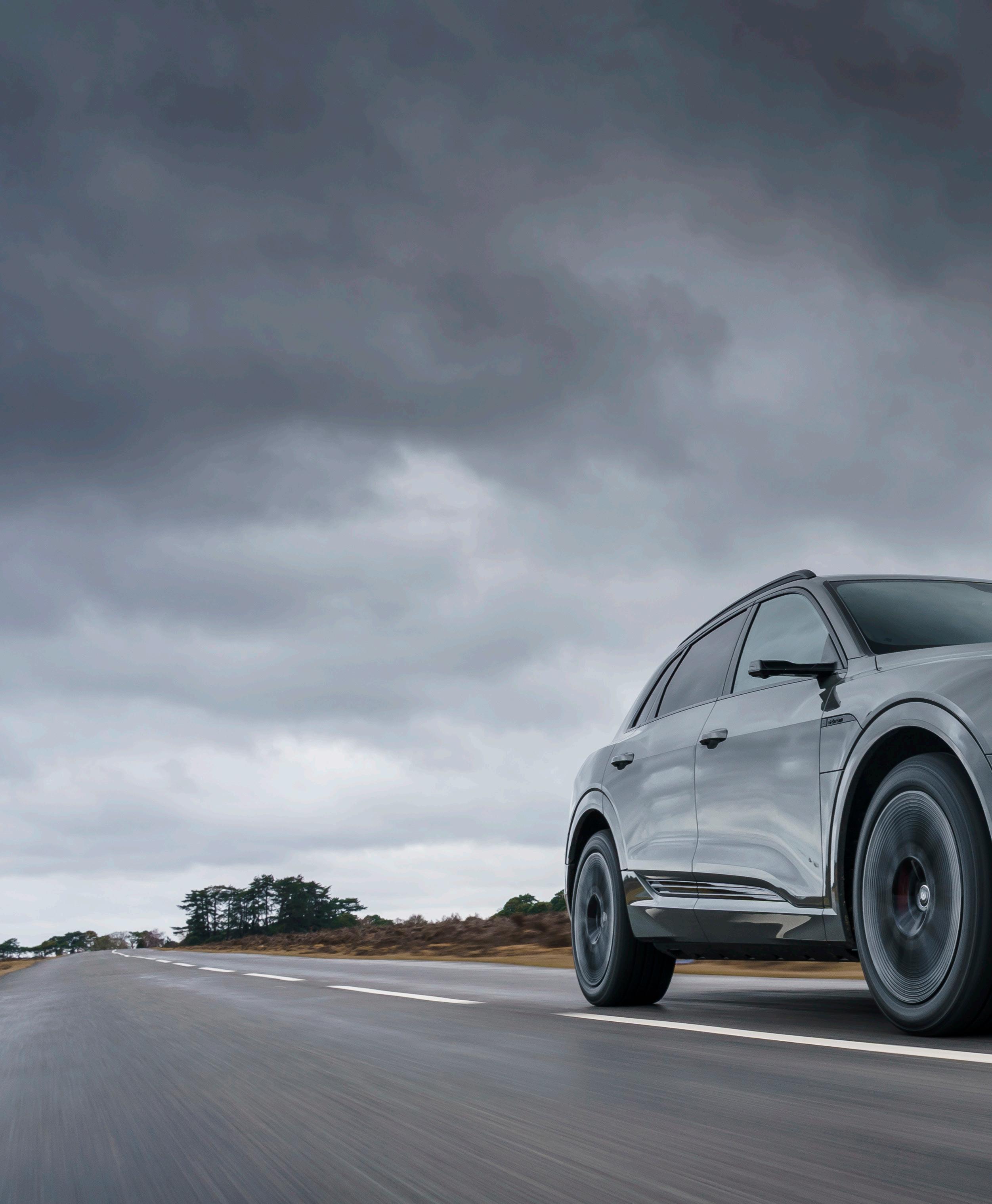 Coasting. It’s normally a word with negative undertones but not from the driver’s seat of the Audi Q8 e-tron. Spacious, sturdy and serene, its high, well-glazed and noise-insulated cabin makes progress feel effortless. Power is always there when you need it, yet the mood is calm and unhurried. Missed a turning? Don’t sweat it. It’ll all work out in the end.