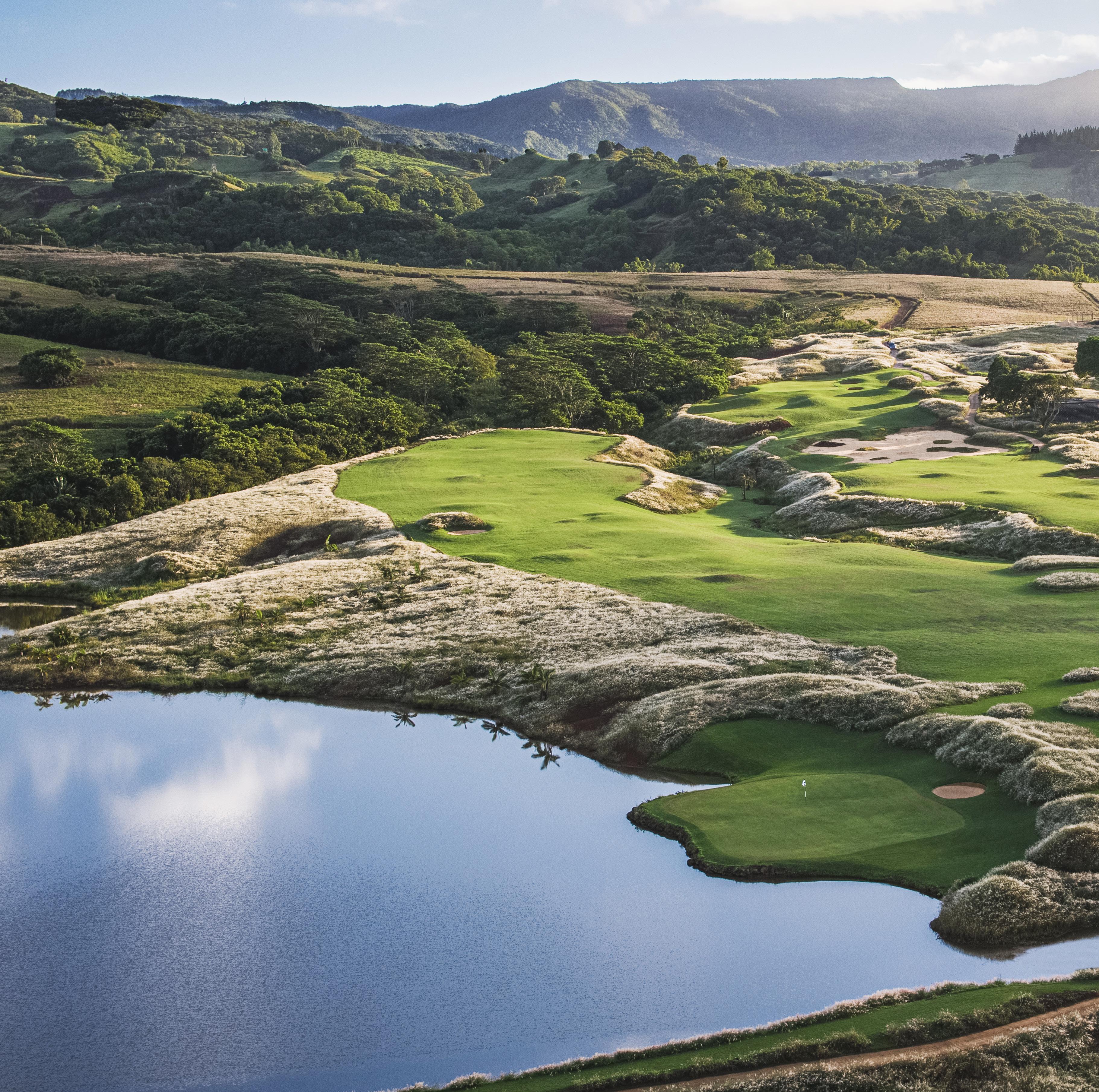 Opened less than two years ago, La Réserve is the Indian Ocean’s only contemporary links course. Co-designed by 2010 Open Champion Louis Oosthuizen and architect Peter Matkovich, the 6,570m layout – which will host the DP World Tour’s Mauritius Open for the second time in December 2025 – carves through dunes, native grasses and bold contours, sweeping dramatically from former sugarcane fields down to the architect-designed clubhouse. Coastal winds ensure a true links test, while infinity greens and panoramic views create a stage where every shot is memorable.