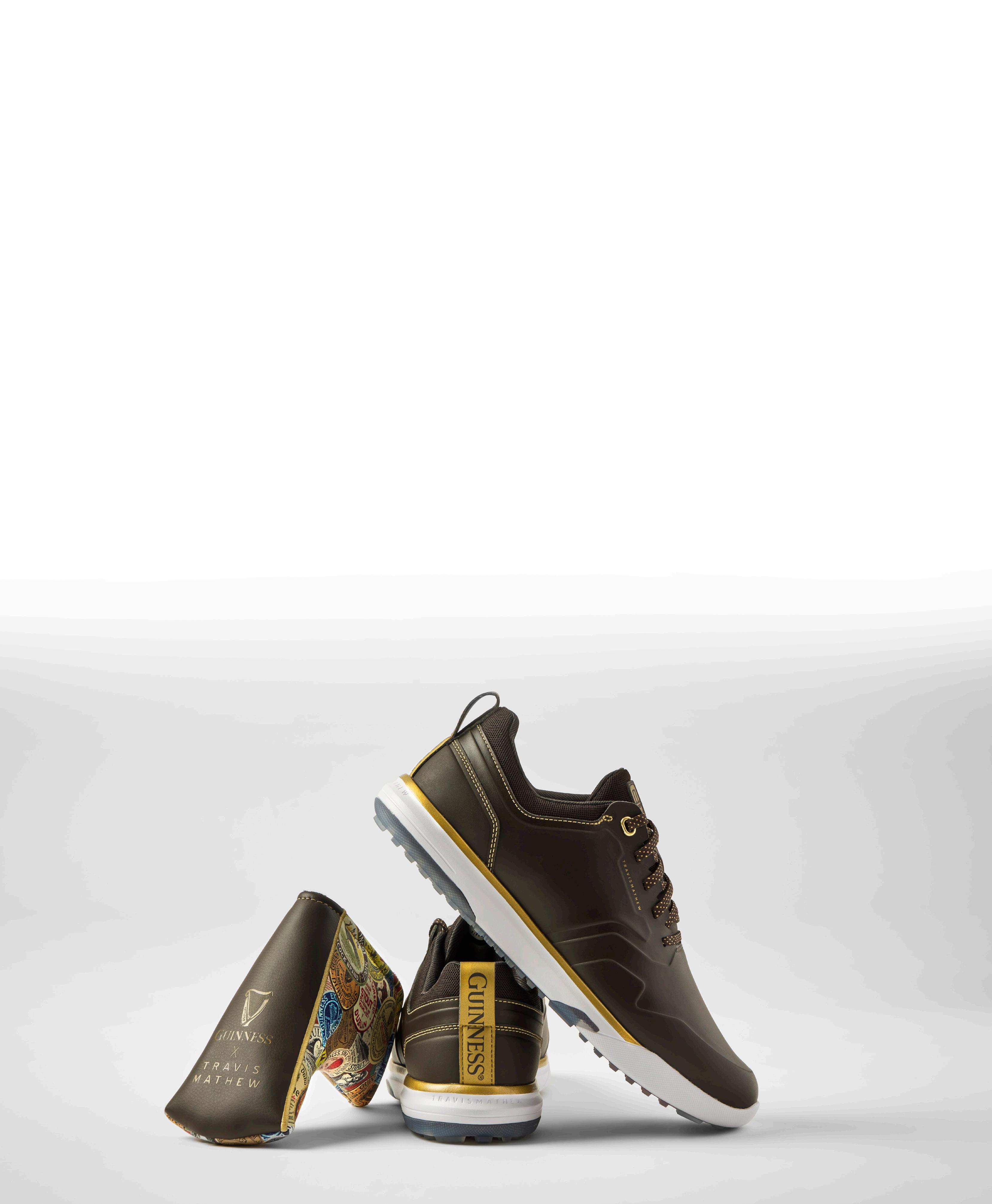 TravisMathew has joined forces with Guinness, purveyors of the ‘black stuff’, to create a limitededition golf shoe that features Guinness branding on the heel and a co-branded tongue, while the insole artwork and the colour of the outsole all provide subtle nods to the world’s most popular stout. Each of the 1,759 pairs that have been made – representing the year of Guinness’ founding – comes with a matching Odyssey putter headcover and is housed in a custom designed box. Drink it up. travismathew.com