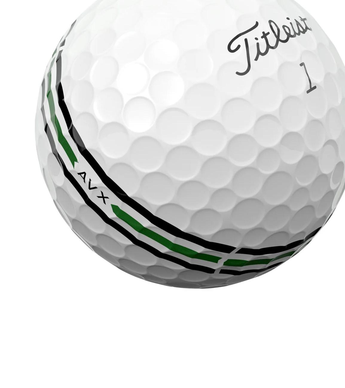 Sitting just below the Pro V1 in Titleist’s ball hierarchy, the AVX is a low-spinning, low-flying model designed for faster-swinging players that produces soft feel and excellent greenside control. AIM (Alignment Integrated Marking) introduces three parallel lines – a green line flanked by two black lines – that cover the full circumference of the ball to improve putting alignment by up to 35%, according to Titleist’s own studies, and also helps when lining up to the target off the tee.