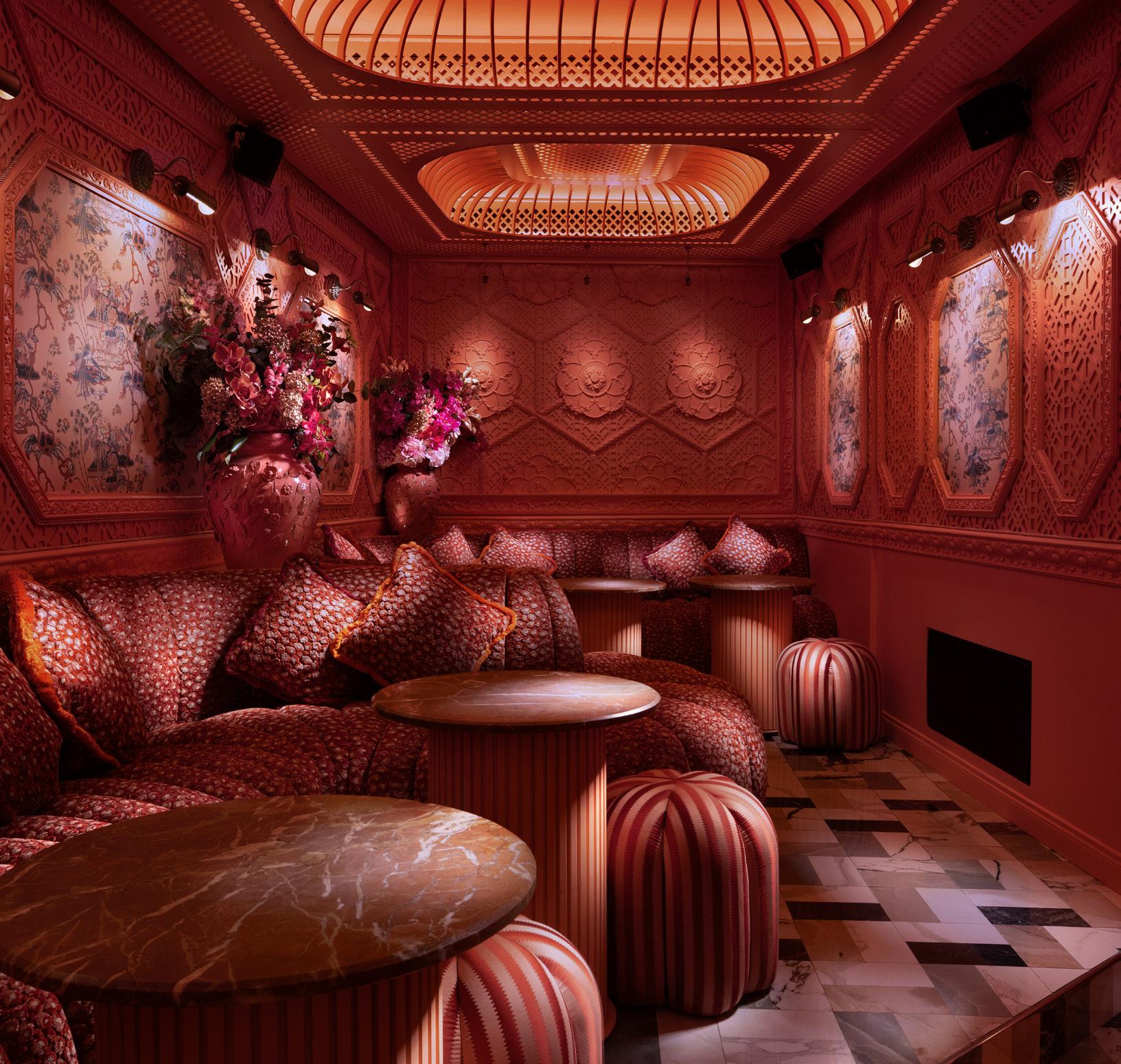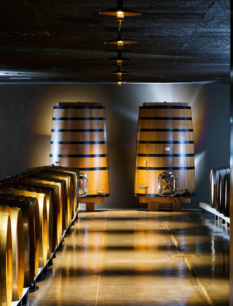 SEEING RED (AND GOLD) Etna’s contemporary architecture includes modern bottaias, as Sicilian barrel rooms are known, and the exuberant, constantly evolving interior design of Morgana cocktail club