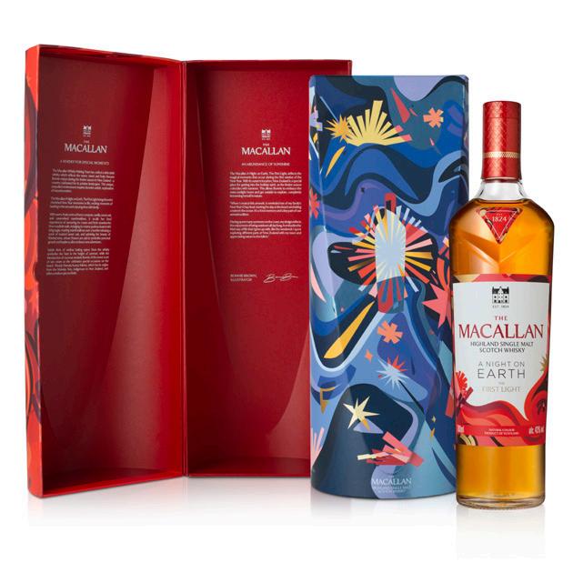 Illustrated by Kiwi artist Bonnie Brown, A Night On Earth The First Light evokes the New Zealand sunrise in a warm, fruity Speyside single malt. macallan.com
