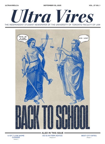 Ultra Vires is the independent student newspaper of the University of Toronto Faculty of Law. We provide a forum for diverse viewpoints on topics of interest to our readers. We aim to foster dialogue on academic and social issues between students, the faculty, and the broader legal community in Toronto, Ontario, and Canada. Our content does not necessarily reflect the views of the Editorial Board. We print six issues per year. Ultra Vires is printed by Master Web Inc.