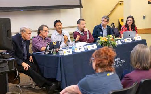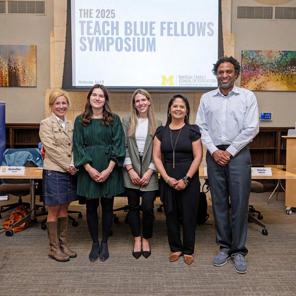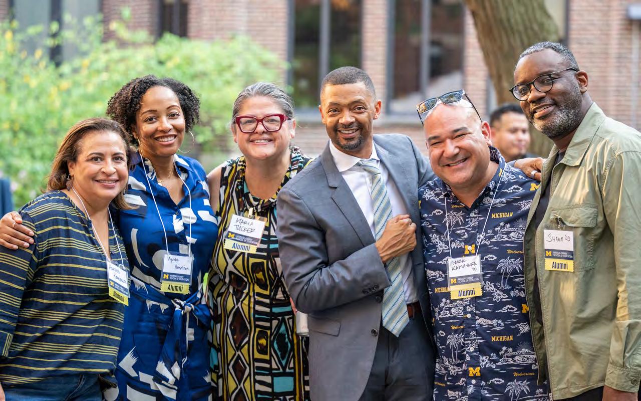 above Recipients of the 2024–25 Marsal Family School of Education Alumni Awards returned to campus to participate in a conversation with Dean Moje. The Elevating Educators panel featured Distinguished Education Practitioner Award recipient Luke Wilcox (BSEd ’01, TeachCert ’01), Distinguished Education Researcher Award recipient Dr. Odis Johnson Jr. (PhD ’03), and Lifetime Achievement Alumni Award recipient Dr. Barbara Eason-Watkins (ABEd ’73, TeachCert ’73).