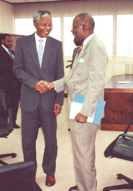 the opportunity to meet Nelson Mandela, and present him with an honorary degree from the University of Michigan. On one trip, they proudly took a photograph of the anti-apartheid activist and politician wearing a hat from their son’s construction company.