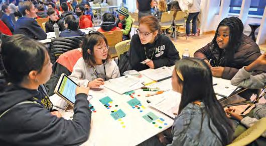 Above Local youth visited campus for the two-day Digital Wellness Symposium, a collaboration between the Marsal School, the School of Information, and the School of Social Work, to explore the impact tech devices and social media have on users. Following the symposium, the youth participants worked for two months with U-M students to research topics of digital wellness and share their findings with other youth and adults in their community.