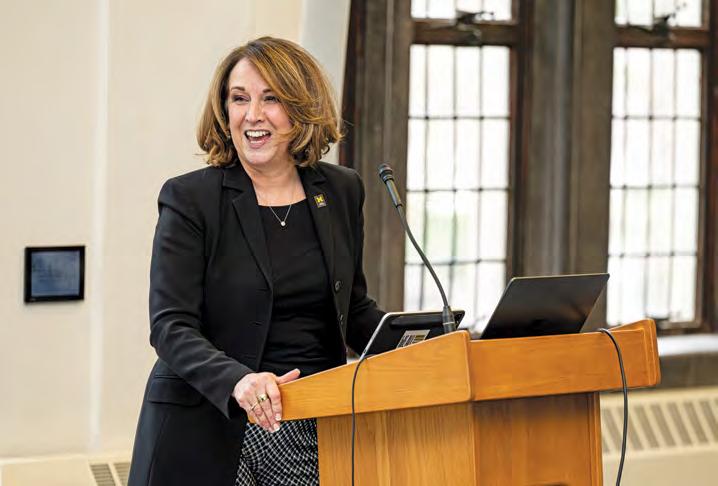 Above In February, Dean Moje represented the university as the featured speaker at the Alumni Association of the University of Michigan Club of London. There, Moje engaged with London-based alumni by sharing the vision and goals of U-M as well as those of the Marsal School.