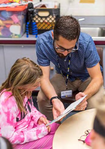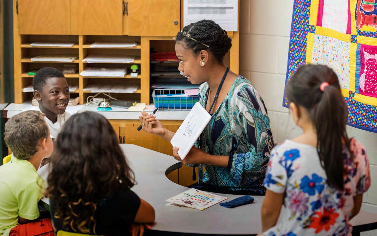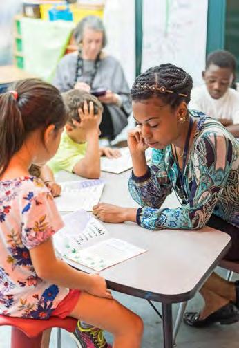 relationships and figure out what a word says is phonics instruction,” explains Wright. “All of that may sound simple, but it’s actually very, very technical. Teachers need to know a lot about language and how it works, the different types of sound-letter relationships, and the sequence of how to teach those relationships to kids.” On top of that, they need to make it fun. Teaching interns learn different instructional practices that they can do with their students to make learning phonics engaging and playful. “That’s what we want it to feel like for kids,” says Wright. “Making these lessons fun is how to get kids started on being readers and writers.”