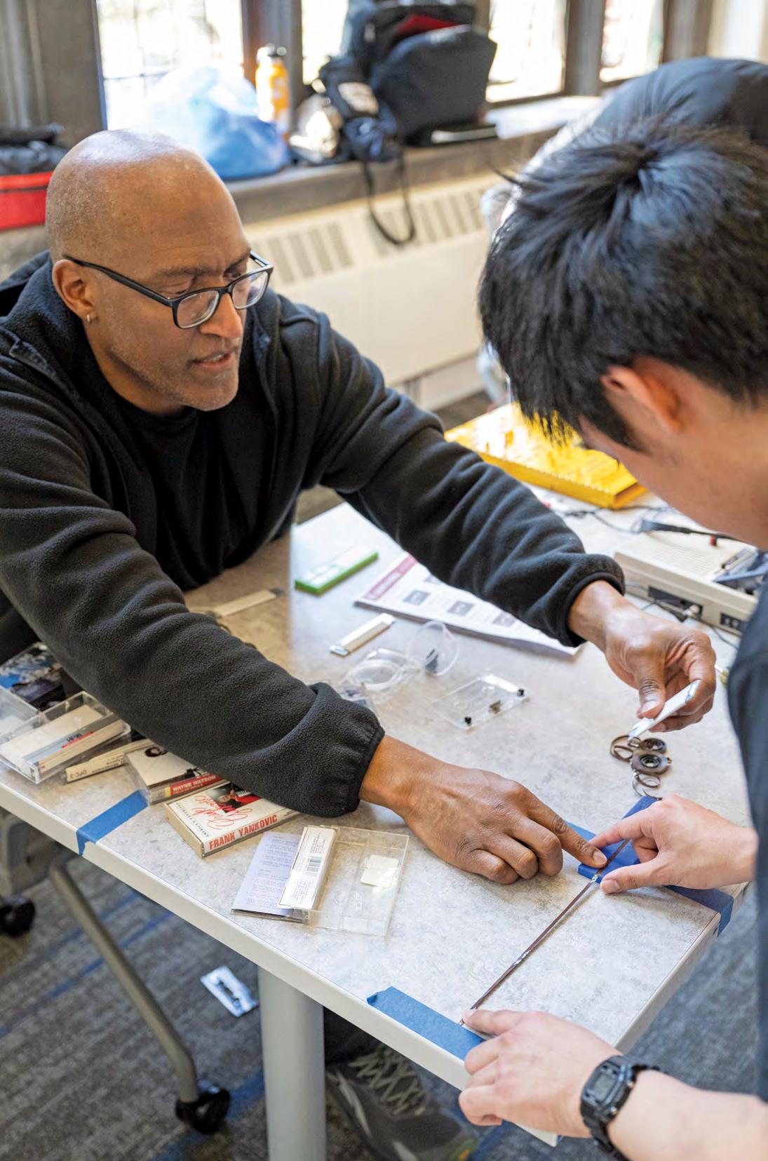 Above The Marsal School’s Eileen Lappin Weiser Center for the Learning Sciences hosted the inaugural Spark Festival of Learning, an all-ages event designed to inspire curiosity and kindle a spark for learning that encourages flourishing and connection. Led by community members, festival activities included making shadow puppets, bike repair, beading, hair braiding, and virtual reality experiences.