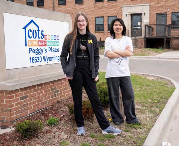 LEAps students Angela Zhou and samantha McDole organizing a space for donated items at COTs in Detroit, p. 18.