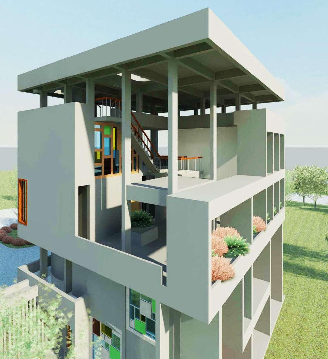 A Le Corbusier, Villa Shodhan is selected for modeling on Revit.