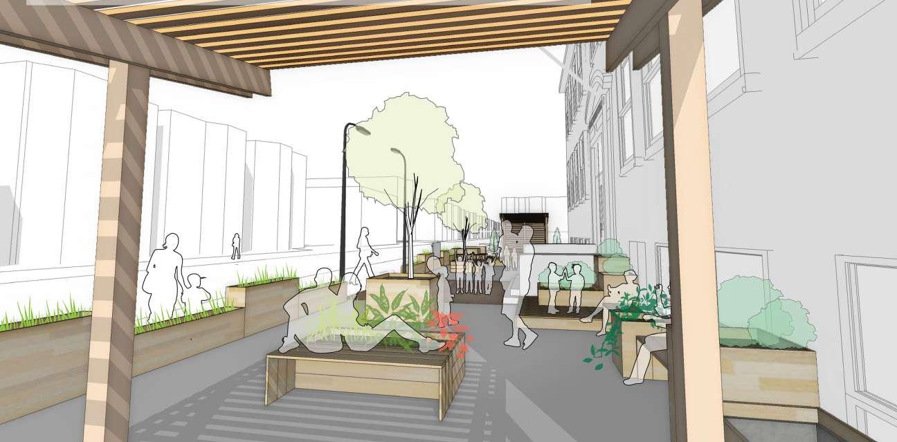 The idea here is to make the entrance of the school more usable for students as well as surrounding community. Planters act as a barriers as well as don’t create any visual hindrance