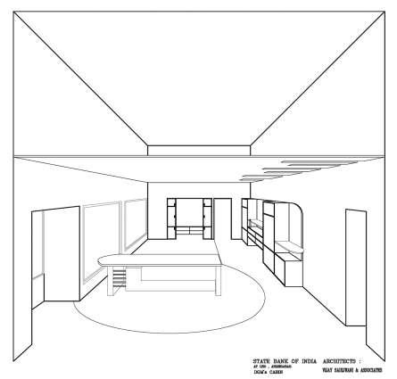 Southern facade has no direct openings on second and third floors are stepped back and they are protected by wooded louvers screen. Third floors that houses offices has no direct opening on south but windows open on east and west. On the west facade the meditation Hall located in the corner is protected by the double facade one with wooded louvers screen and second with glazed openable doors to bring in air and light when needed.