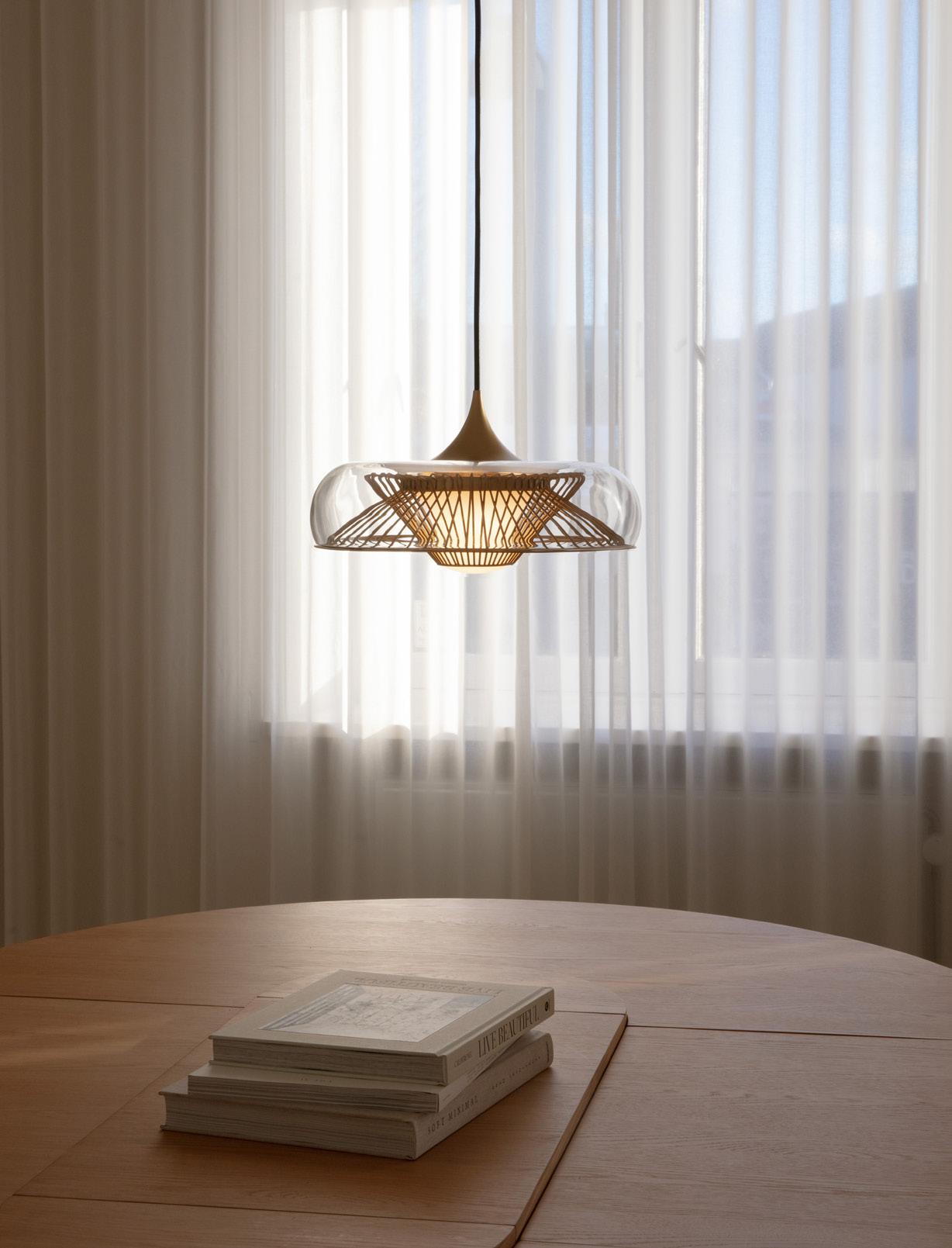 The Clava Wood collection celebrates the beauty of natural materials and precise craftsmanship through a sculptural lighting design. Defined by laser-cut wooden lamellae, each piece casts playful, atmospheric patterns of light that bring warmth and depth to surrounding spaces.