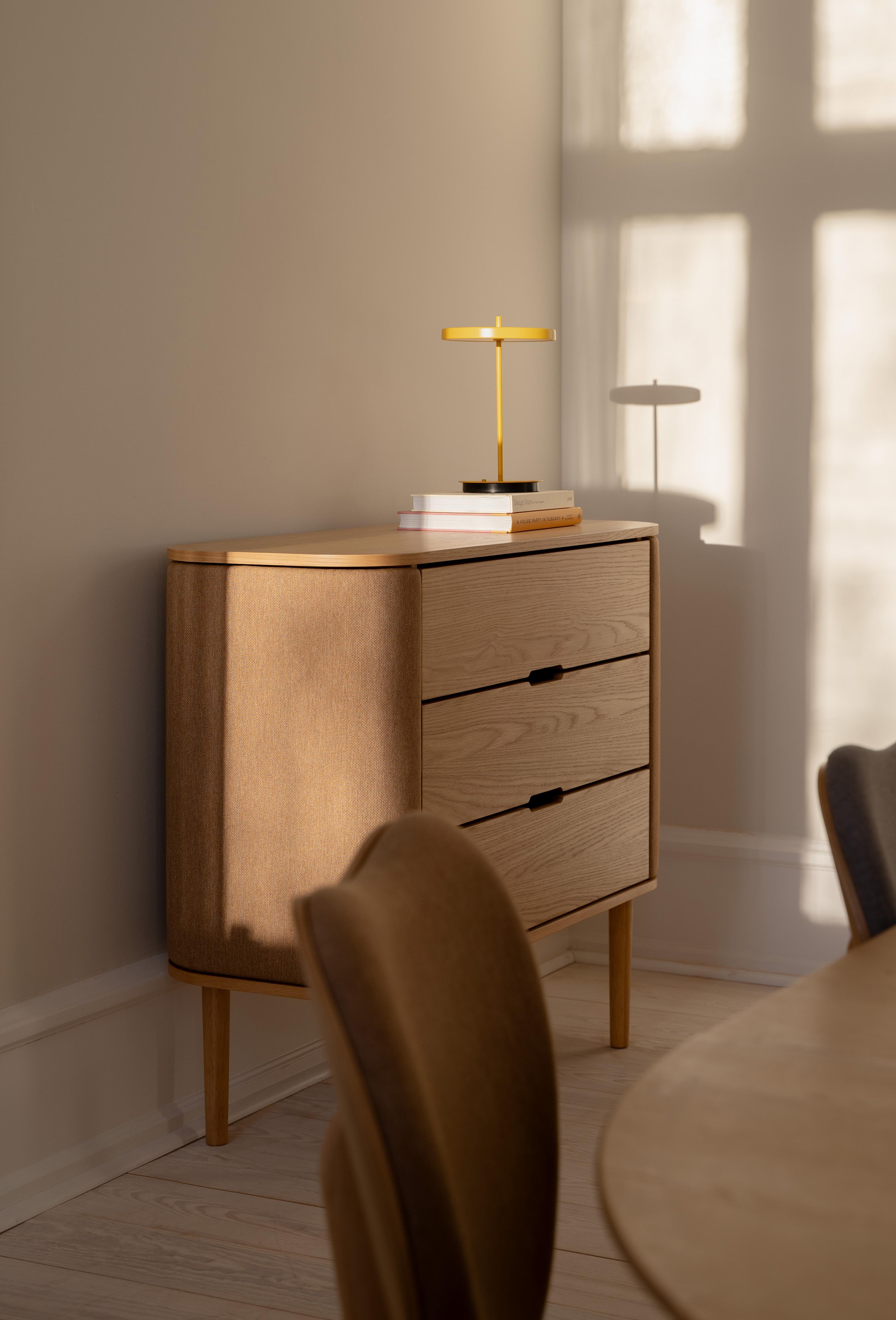 Materials: Solid oak, plywood, 100% recycled polyester and PUR Specifications: Fabric specifications on pages 198-207. Fabrics from Sørensen Leather and Kvadrat are made-to-order. Please contact info@umage.com