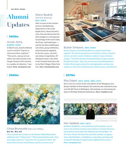 Sheryl Budnik (formerly Budnick), B FA 1 9 6 9 After 20 years in the Creative Services and Marketing Department at the Grand Rapids Press, Sheryl retired in 2009. She now devotes her full