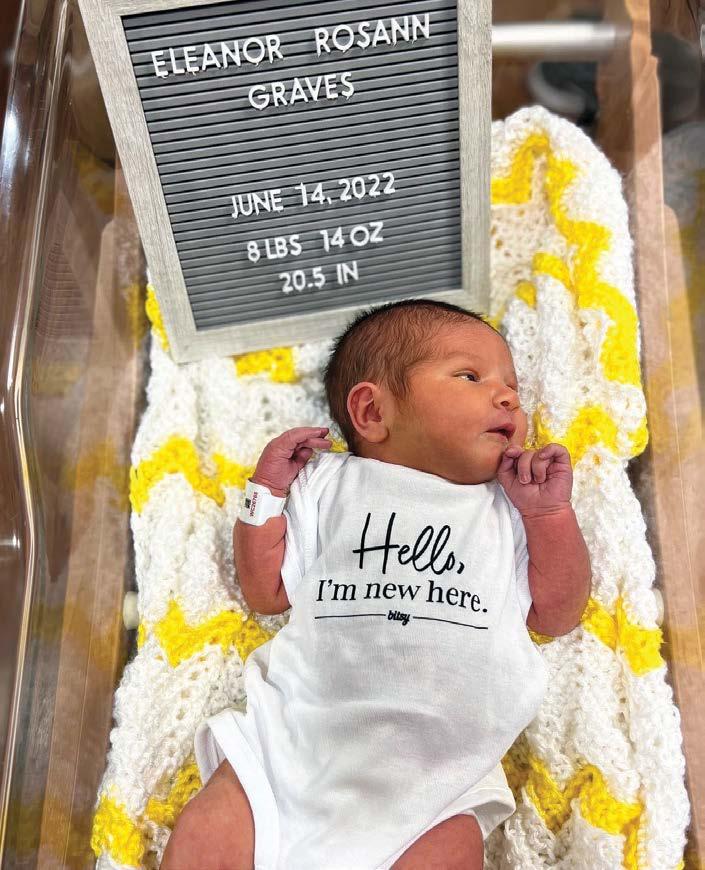 MAGDALEN (MORRIS), ’17, and Dylan Graves recently had a daughter, Eleanor Rosann, born on June 14. They are enjoying their time as a family of three.