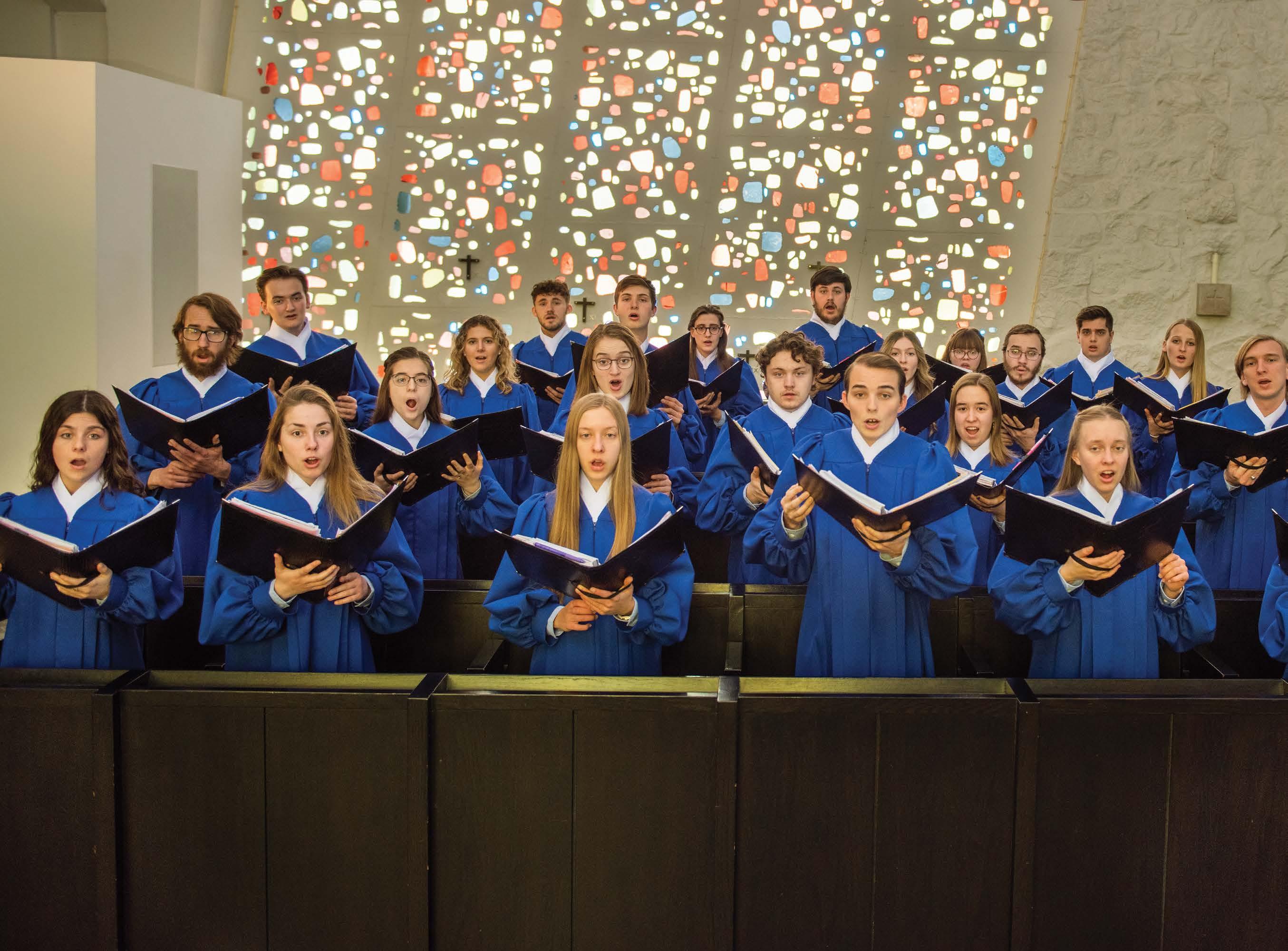 Along with providing music for on-campus liturgies, Cappella regularly visits schools and churches throughout our region and across the nation at the request of the President’s Office. “It’s looking now like we’re going to settle on three big trips per year, in addition to local and regional events,” Raber said. “One to Denver, where we’ll sing at a number of schools as well as a major recruitment event; one to the MinneapolisSaint Paul area for Luminosa, our annual Advent festival; and one to Mary College at ASU in Phoenix for the Desert Rose Gala each winter.”
