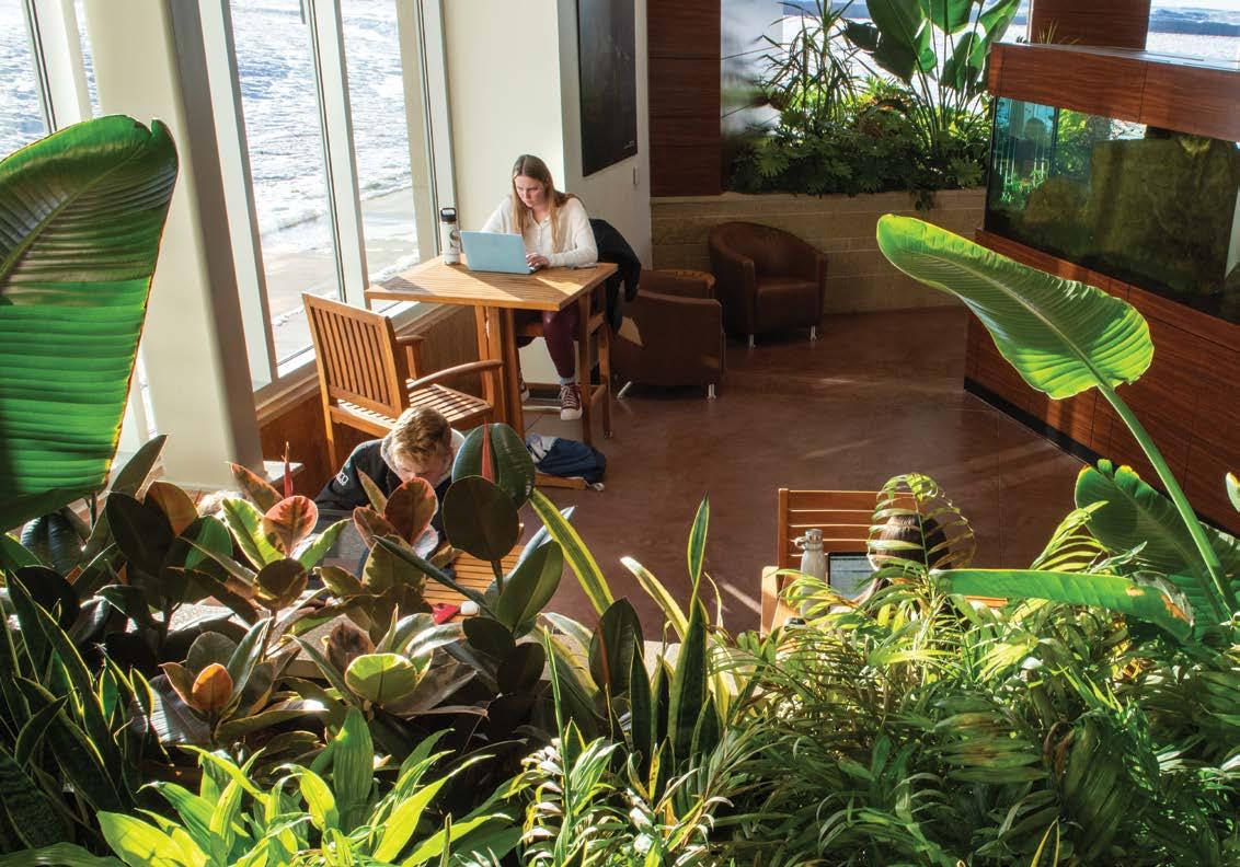 Benefactor Janet Lanterman first envisioned the Lodge as an on-campus sanctuary with "real plants, water, and sunshine."