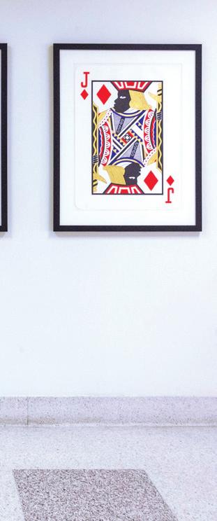 These striking pieces elevate playing cards into images of Black royalty. “They remix and interrogate the symbolic codes underlying coats of arms … by incorporating African textile patterns and garments,” says Youngborg. “These are the pieces I get the most emails about from people who want to buy them from us.”