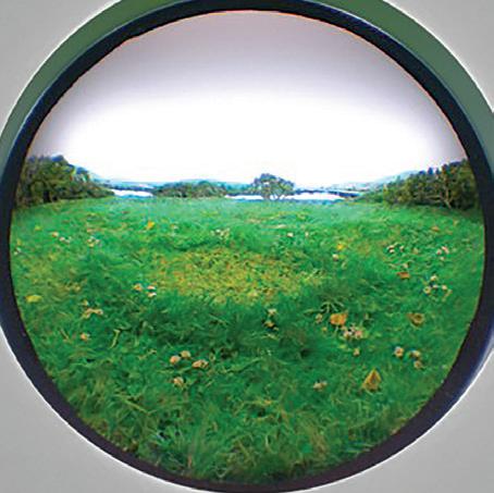 This whimsical piece is nestled above the bustling Food Court. A 3-inch lens in a hole cut into the wall serves as a portal to a meadow scene contained within a 2-foot-wide box. “It’s a hidden delight in the collection,” says Youngborg. “It feels really magical, and it’s something you could lose yourself in.”