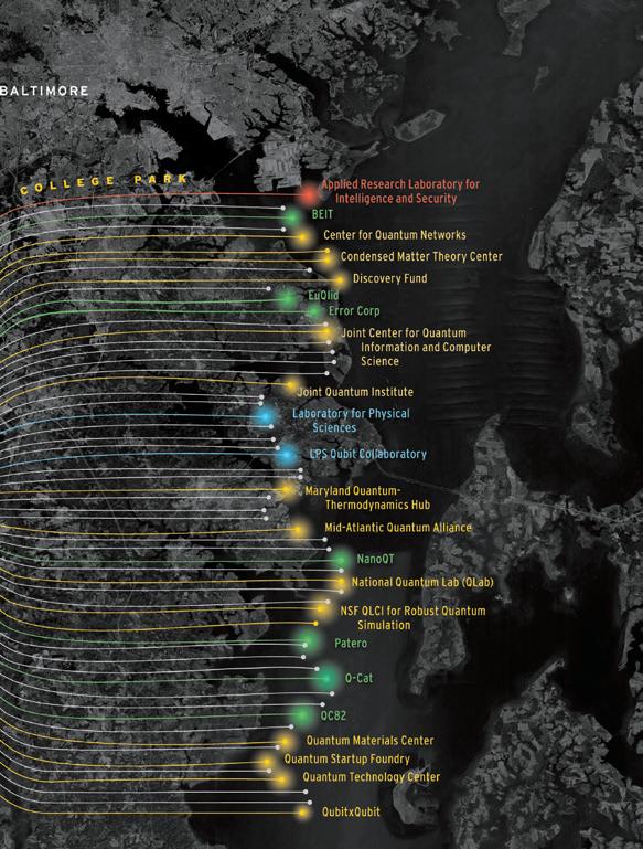 THE WEST COAST HAS SILICON VALLEY. THE NATIONAL CAPITAL REGION BOASTS THE GROWING CAPITAL OF QUANTUM —AND AT THE CENTER IS THE UNIVERSITY OF MARYLAND. As one of the world’s leading hubs for quantum science and engineering, we bring together hundreds of brilliant researchers, robust partnerships and a vibrant business ecosystem that includes IonQ, a global leader in quantum computing spun out of UMD labs. Together, we’re building a new industry that will invigorate the state of Maryland’s economy while ushering in revolutionary tech to benefit the world.