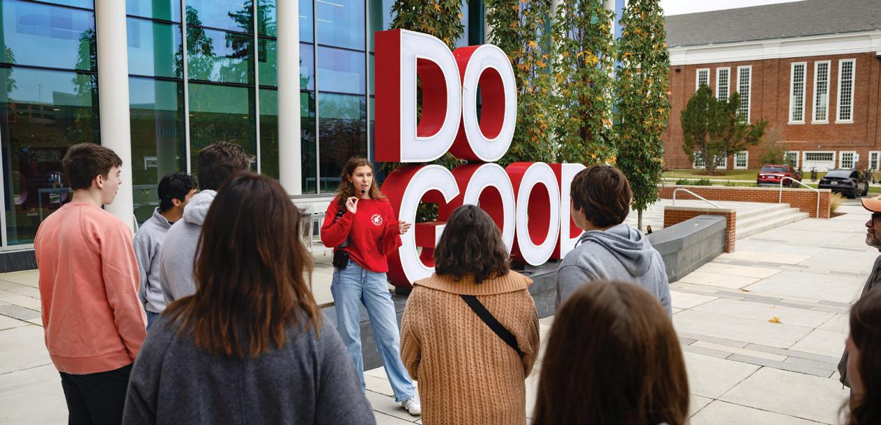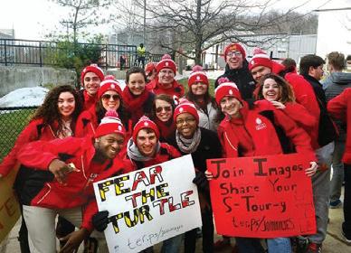 professionalism in December by adopting a new name and standardized uniforms. They’re now Terp Guides a change spurred by its members becoming student employees, rather than volunteers and they can be spotted across campus waving (and wearing) a little Maryland flag-bearing Testudo (shown on facing page) on their matching sweatshirts and gear.