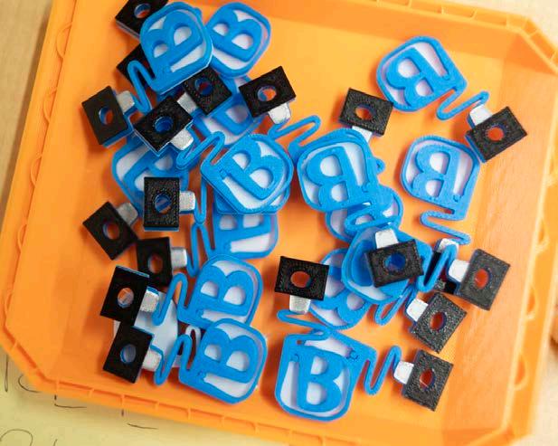 The space is outfitted with 10 Prusa Mk3 S+ networked printers, two 3D scanners and circuit boards, Arduino, and robotic components available to all students. Students lead workshops and certification courses on the use of all the equipment and materials in the space.