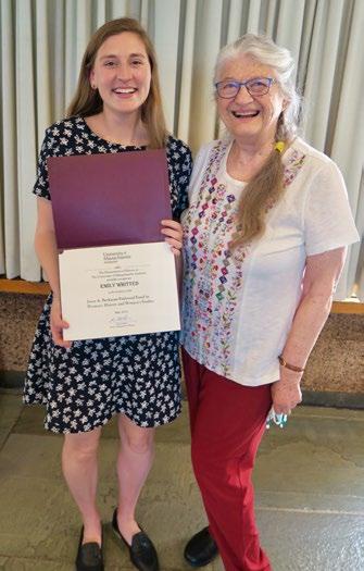 In May, we were able to gather in person in the Campus Center for the graduate awards ceremony, which had been held remotely in 2021. The event included most of the students, many faculty, and quite a few of the emeriti. As in the past, our graduate students won a number of prestigious departmental, university, and external awards, as you can see on page 13. Three PhD candidates, Adeline Broussan, Jenna Febrizio, and Sarah Lavallee, defended their dissertations this academic year and graduated in May, along with Jason Higgins, who finished his dissertation last summer. Brittany Frederick and Charles Weisenberger finished their dissertations this past summer and will officially graduate in May of 2023. Eight of our students completed their master’s degrees: Gina Beavers, Zoë Cheek, Marguerite DiGiorgio, Tirzah Frank, Emma Lewis, Eric Ross, Allison Smith, and Cat White.