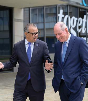 Chancellor Michael F. Collins with WHO Director-General Tedros Adhanom Ghebreyesus, PhD, at the opening of the new education and research building in June.