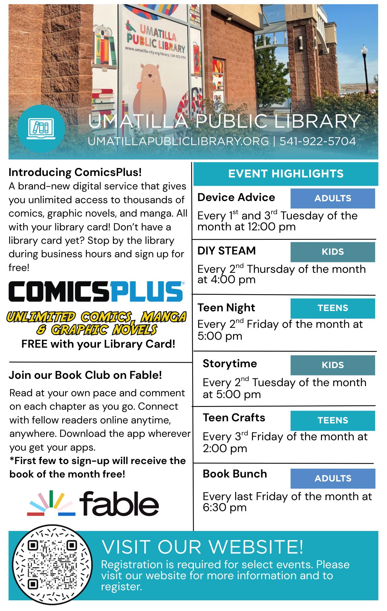 Visita nuestro sitio web www.umatillaparksandrec.org o llama al 541-922-3226 ext. 120 o Escanea el c贸digo QR