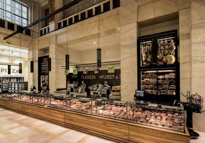 The Store Makers at umdasch see themselves as versatile partners for the retail sector, who naturally like to make use of the full range of services and contribute their expertise in an integral manner. Sometimes, however, less is more. When SPAR placed an order for the shopfitting of a new INTERSPAR branch in the prestigious building at Schottentor in Vienna’s 1st district, the main concern was to emphasise the features of this jewel of a historic building and to make it fit for the large numbers of customers which can be expected in a Food Retail Store. It is possible to protect such a building, and at the same time to open it up. For example, by putting in new floors and placing the fixtures in the middle of the space. A specially produced collection of furniture blends with the historical setting as if it has always been part of the inventory. Customers now move through contemporary shopping terrain and can nonetheless find themselves at close quarters with history in the atmosphere of the Palais Ephrussi and Daun-Kinsky.