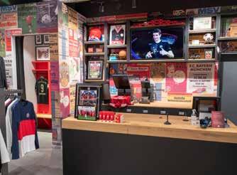 FC Bayern Munich. The world of FC Bayern Munich lies in the heart of the capital of Bavaria, half-way between the Town Hall and the Frauenkirche. The seven-storey building with its boutique hotel, two restaurants and a flagship store was completed in time for the 120th anniversary of the founding of the football club. With a sales area extending over more than 1,000 square metres, designed and realised by umdasch The Store Makers, the store is also a hot challenger for the Champions League in the retail sector.