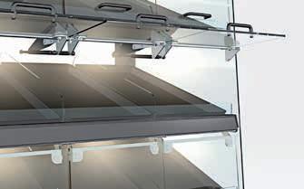 Full-scale single pane safety glass flaps, damped automatic closure (closing time: approx. 15 sec.)