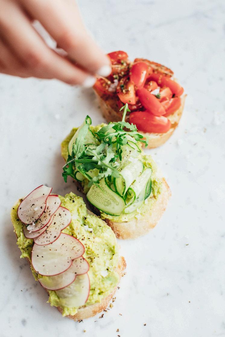 Grab some avocado spread from the deli and toast your bread of choice Use a knife to spread the avocado onto the toast. Season with salt and pepper and drizzle olive oil on top. Note: to add a bit more protein to the mix, add a hard boiled egg! Slice in half and place on top.