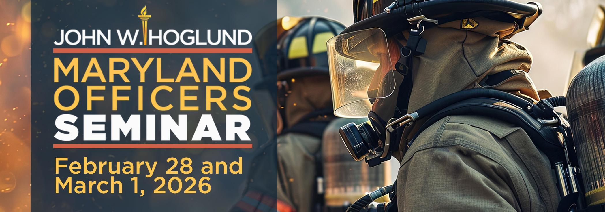 The Maryland Fire Chiefs and Maryland Fire and Rescue Institute present The John W. Hoglund Maryland Officers Seminar on Saturday, February 28 & Sunday, March 1, 2026 from 8 a.m. to 5 p.m. at the Howard County Department of Fire and Rescue Services Training Academy, 2200 Scott Wheeler Drive, Marriottsville, MD 21104. Register today to attend this seminar entitled Struggles and Successes Across the State: Five Fire Leaders Will Share Lessons Learned. To register, visit: https://www.mfri.org/schedule/seminars