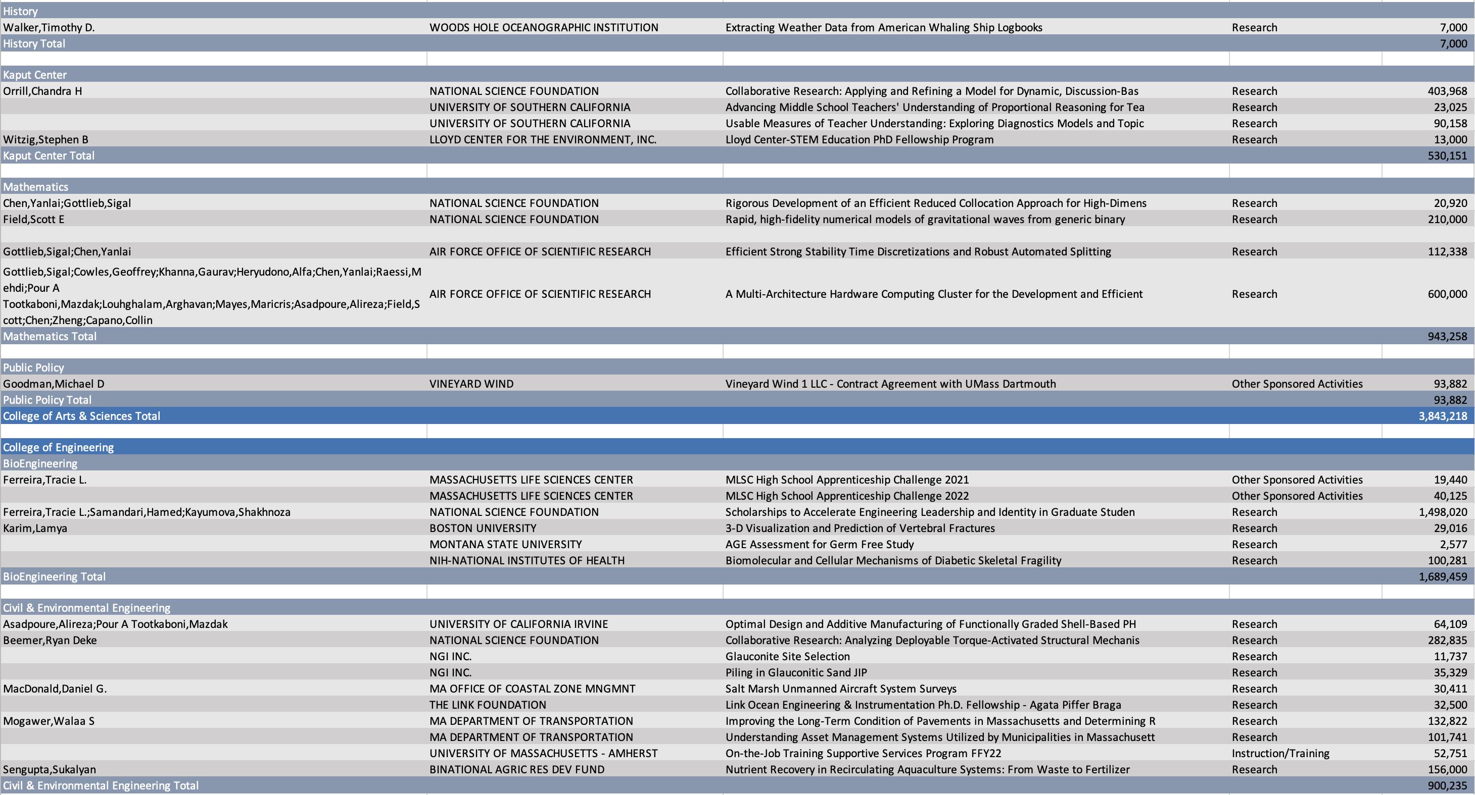 It is my pleasure to report UMass Dartmouth's continued growth in impactful research activities with important contributions to knowledge creation, student training, and economic development. I could not be prouder of the research community at UMassD and the results they have accomplished.