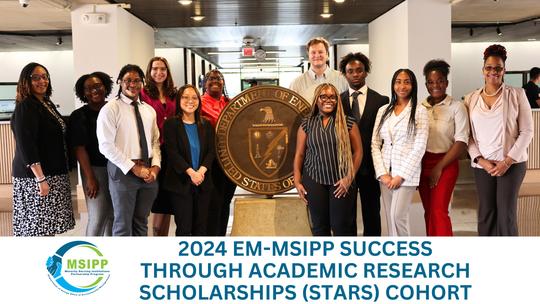 The U.S. Department of E ement (EM) Success Through Academic Research Scholarship (STARS) program provides opportunities for undergraduate students from Minority Serving Institutions pursuing degrees in science, technology, engineering, and mathematics (STEM) that supports the EM research and operations in the following areas: Soil & Groundwater; Deactivation & Decommissioning; Tank Waste; Robotics; Machine Learning; Artificial Intelligence; Cybersecurity; and Advanced Manufacturing.
