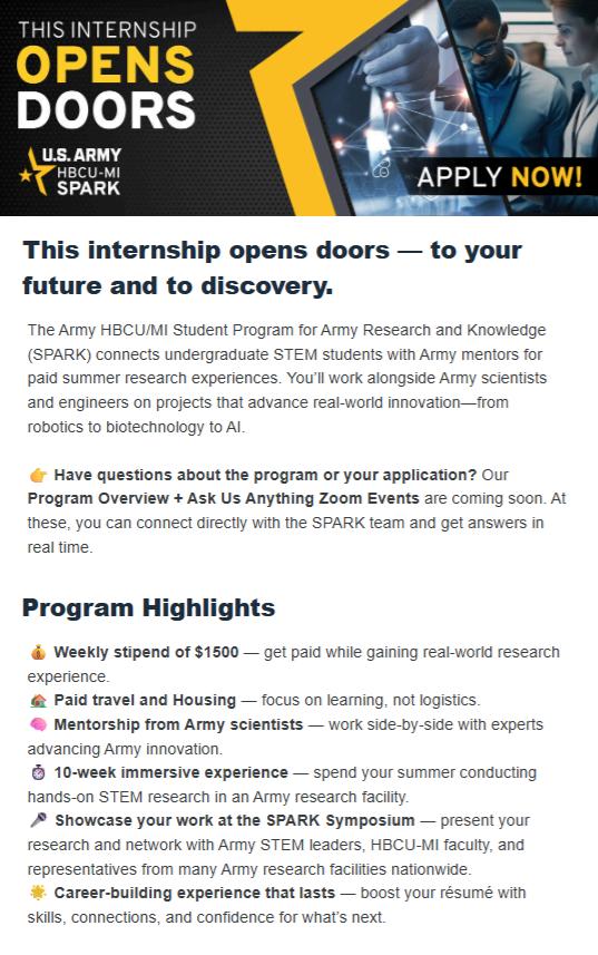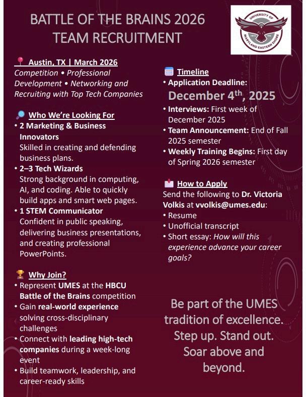 Allareinvited:“Nolabcoatrequired-justcuriosity!” Contactusviaemail@ umes-surs25committee@liveumes.onmicrosoft.com