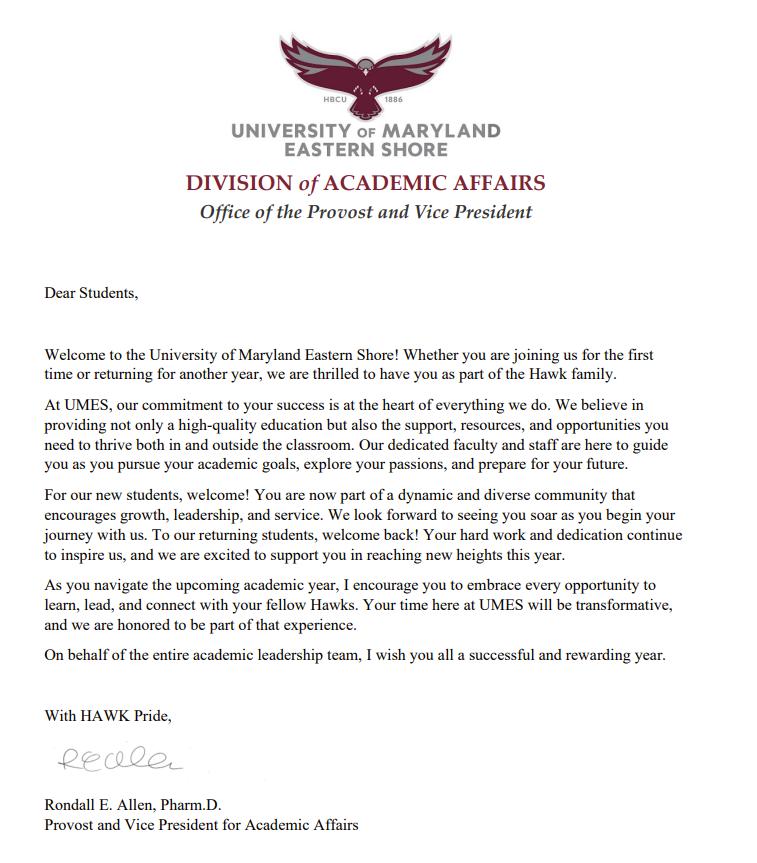 TheUniversityofMarylandEasternShore(UMES)isdedicatedtofosteringavibrantlearning environment guided by its core values to effectively pursue our educational objective, promote and maintain exemplary standards of behavior and academic excellence. The Universityhasestablishedacomprehensiveframeworkoutliningexpectationsforpersonal conductwithinourcommunity.Byupholdingthesestandardsrigorously,wesafeguardthe welfare of our campus community and actively contribute to the holistic growth and developmentofourstudents.