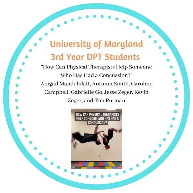 UMES DPT graduates Gaby Go, Autumn Smith, Abby Mandelblatt, Tim Putman, Kevin Zeger, and Jesse Zeger received 1st Place in a promotional video made for Brain Injury Awareness Month in March. The content was sponsored by the Brain Injury Special Interest Group of the American Physical Therapy Association. The students focused on concussion management by physical therapists.