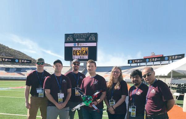 displayed their functional quad-copter design. The drone design/construction was funded by an $8,000 U.S. Army grant the team earned with their proposal. The team was supervised by Dr. Payam Matin and included certified pilot Scott Hogan, and pilot coach Edward Brink.