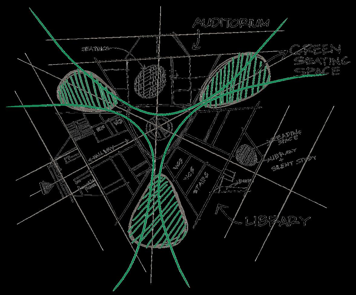 “Nexus” functions as a focal point where students can conveniently access information, study, and socialize. The layout comprises three distinct sections, each fulfilling a unique purpose, linked by a lively green space intended for communal activities. The name “Nexus” aptly reflects this interconnected aspect of the design.