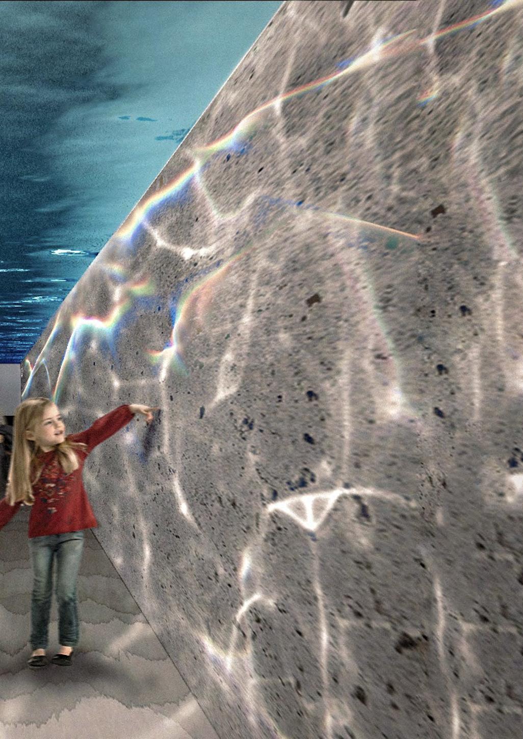 The tunnel running beneath the artificial pond hosts a stunning caustic light effect.`