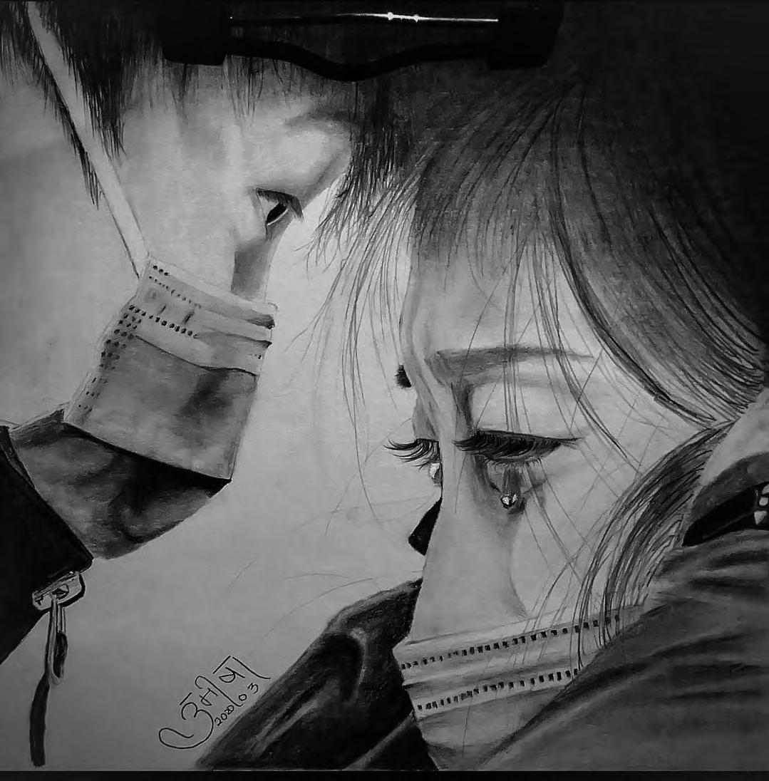 -This sktech that I made during the hardships of COVID in which the health worker bids farewell to his loved one