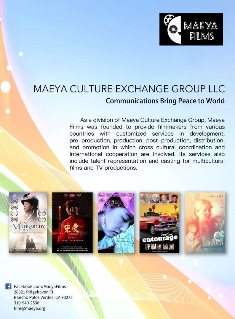 Maeya has many years of experience in the promotion and distribution of family-friendly films, Both in the U S and in China As of to date, Maeya has the distribution rights of 63 films imported from China All of the films have been promoted through participation in various film festivals.