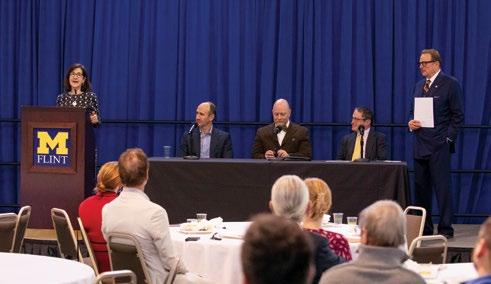 The School of Management and the Rotary Club of Flint welcomed members of the university and community to the annual Economic Forum held at UM-Flint’s Northbank Center on December 8th of 2023. The event featured Christopher Douglas, PhD, professor of economics and chair of the Department of Social Sciences and Humanities; Yener Kandogan, PhD, interim dean of SOM and professor of international business; and Steve Chenenko, MBA, former chief investment risk officer for Nationwide Insurance.