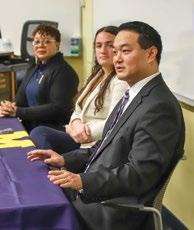 The panelists presented insights on doing business in Asia, Latin America, and Europe to a group of international business students.